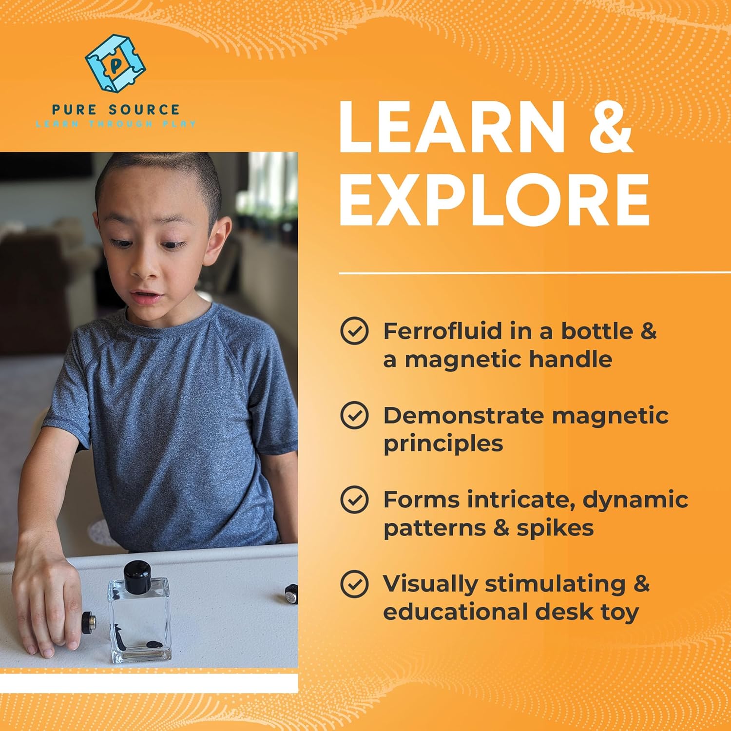 - IDEAL EDUCATIONAL GIFT: Spark a passion for science with the FerroFluid Display, the perfect desk toy for aspiring engineers and scientists, enhancing their collection with a magnetic fluid spectacle. The Ferrofluid Bottle contains 2ml of our premium ferro fluid, creating mesmerizing levitating magnetic spikes upon the approach of a magnet.