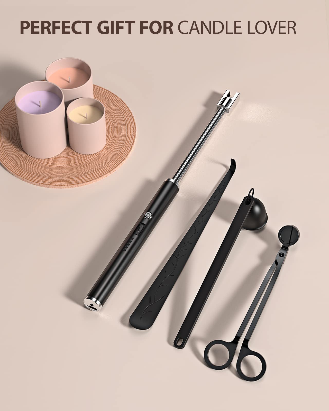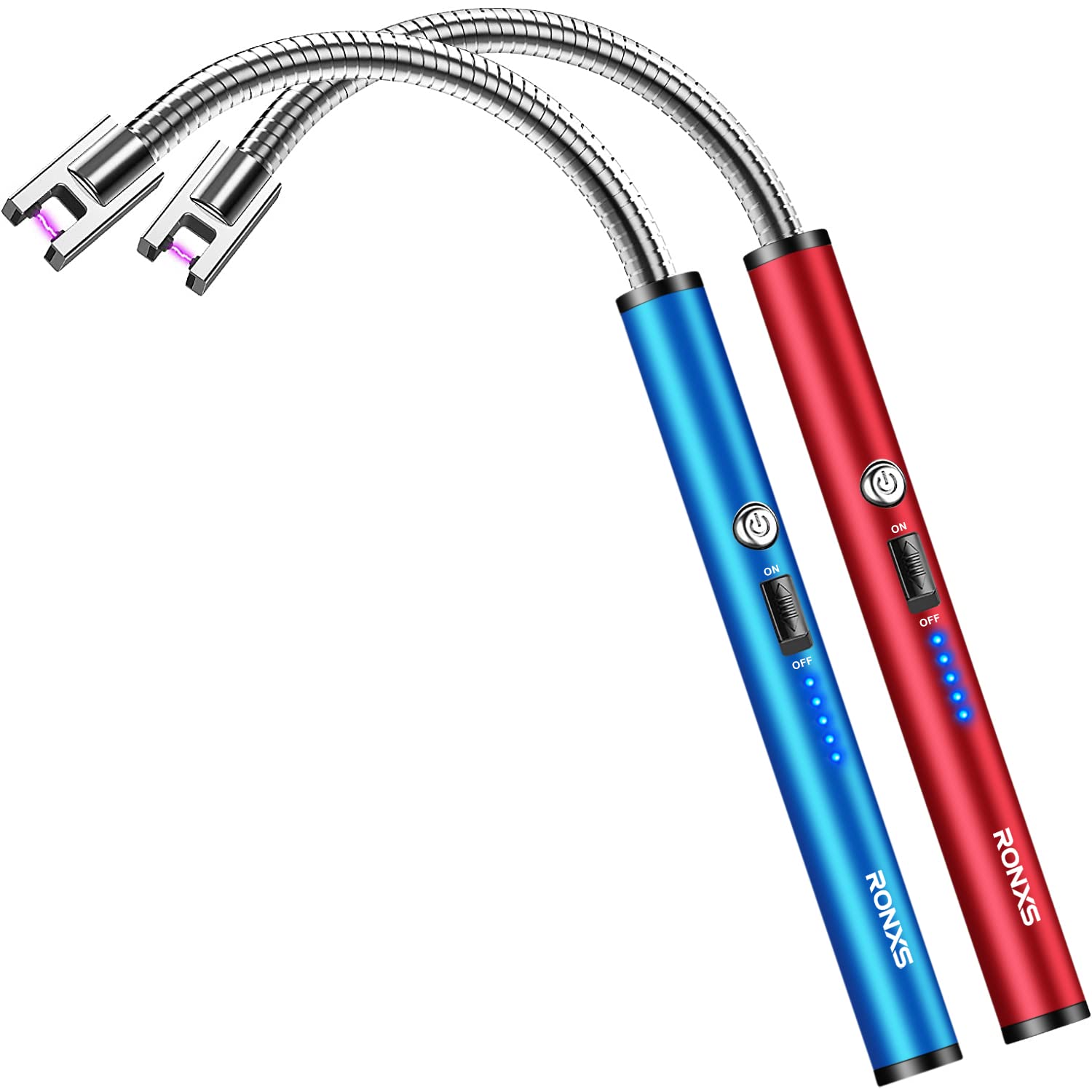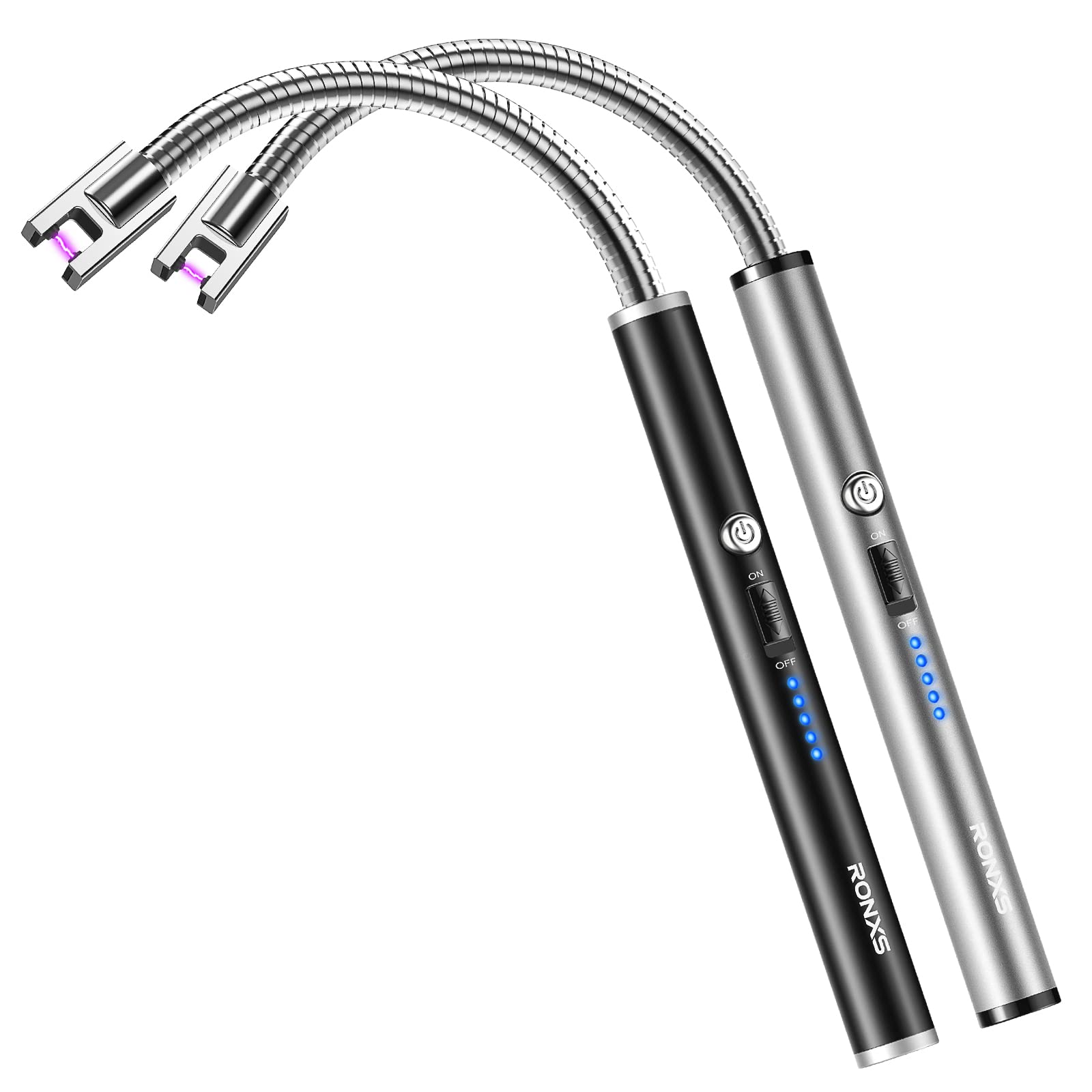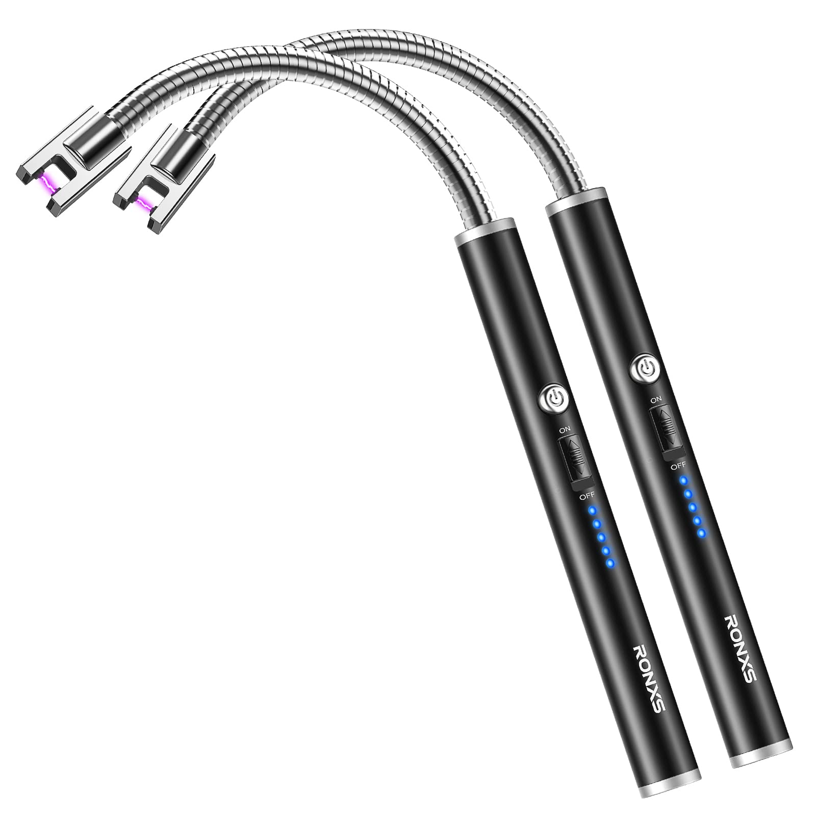 RONXS Candle Lighter, Electric Lighter, Rechargeable Type C Lighters Arc Lighter with LED Battery Display, Flameless Long Lighters for Candles Grill BBQ Camping (Black)