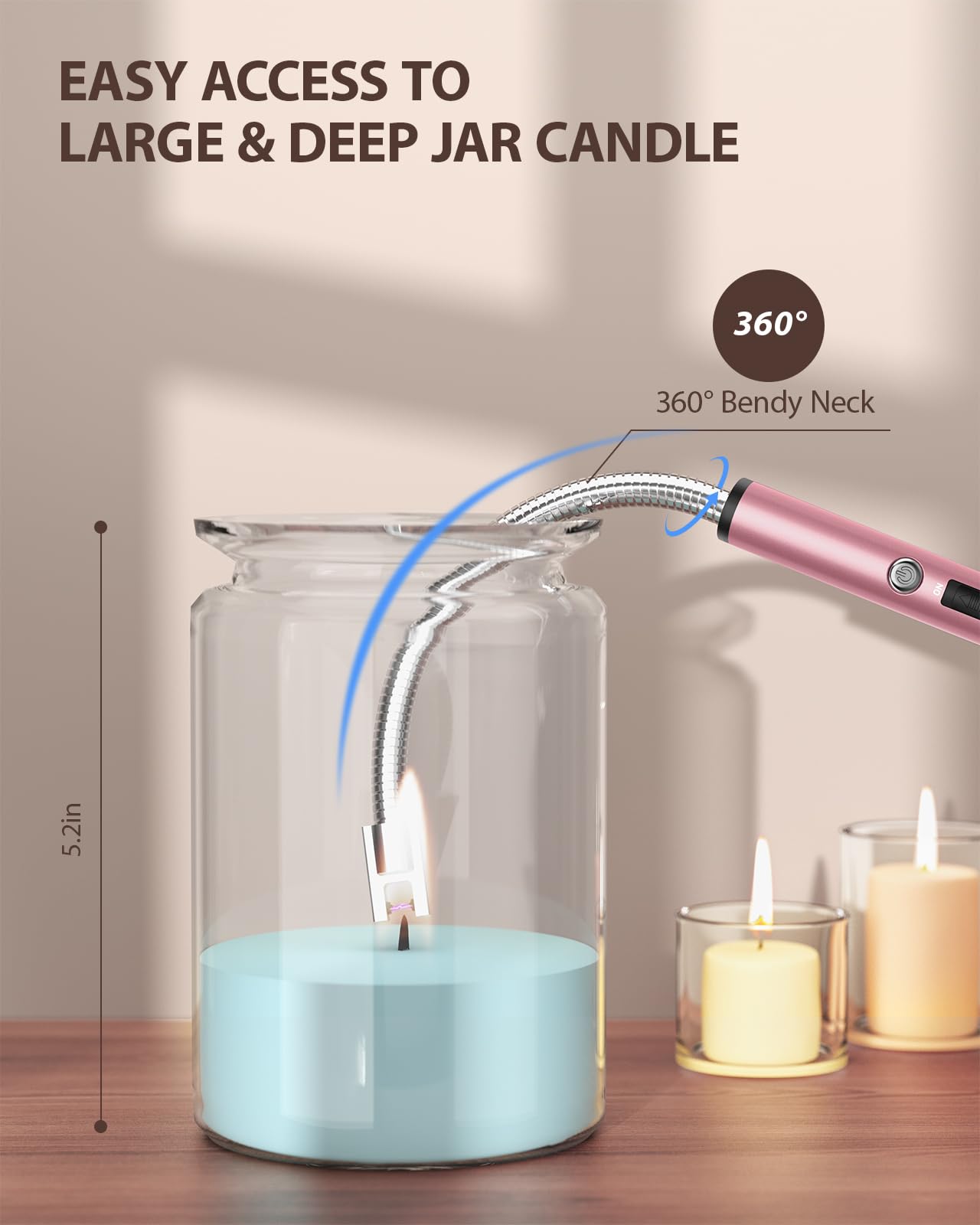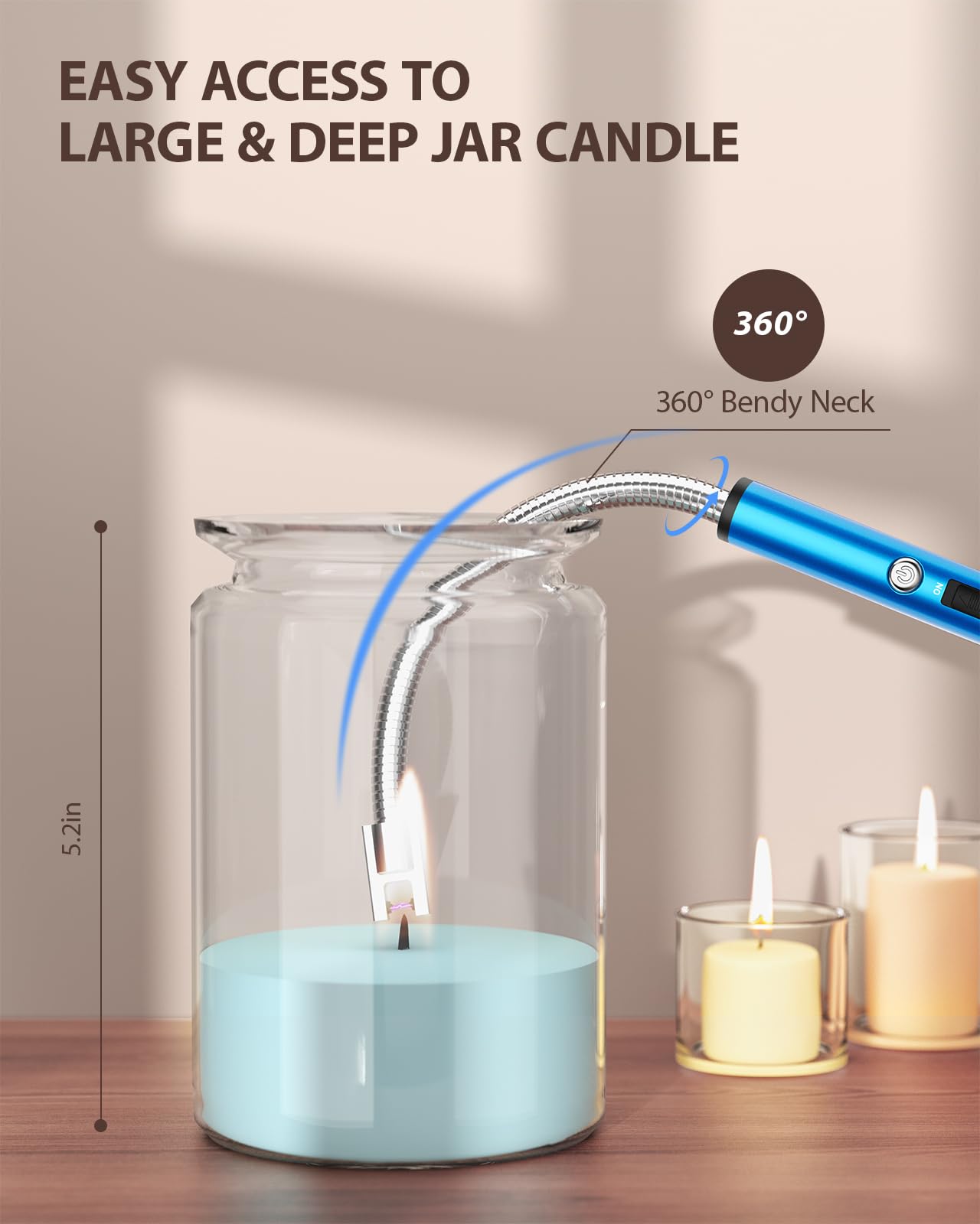 - 【Longer Flexible Neck】Our electric lighter features a 10cm/4-inch flexible neck that effortlessly rotates 360 degrees, allowing you to reach tricky spots and light from any angle.